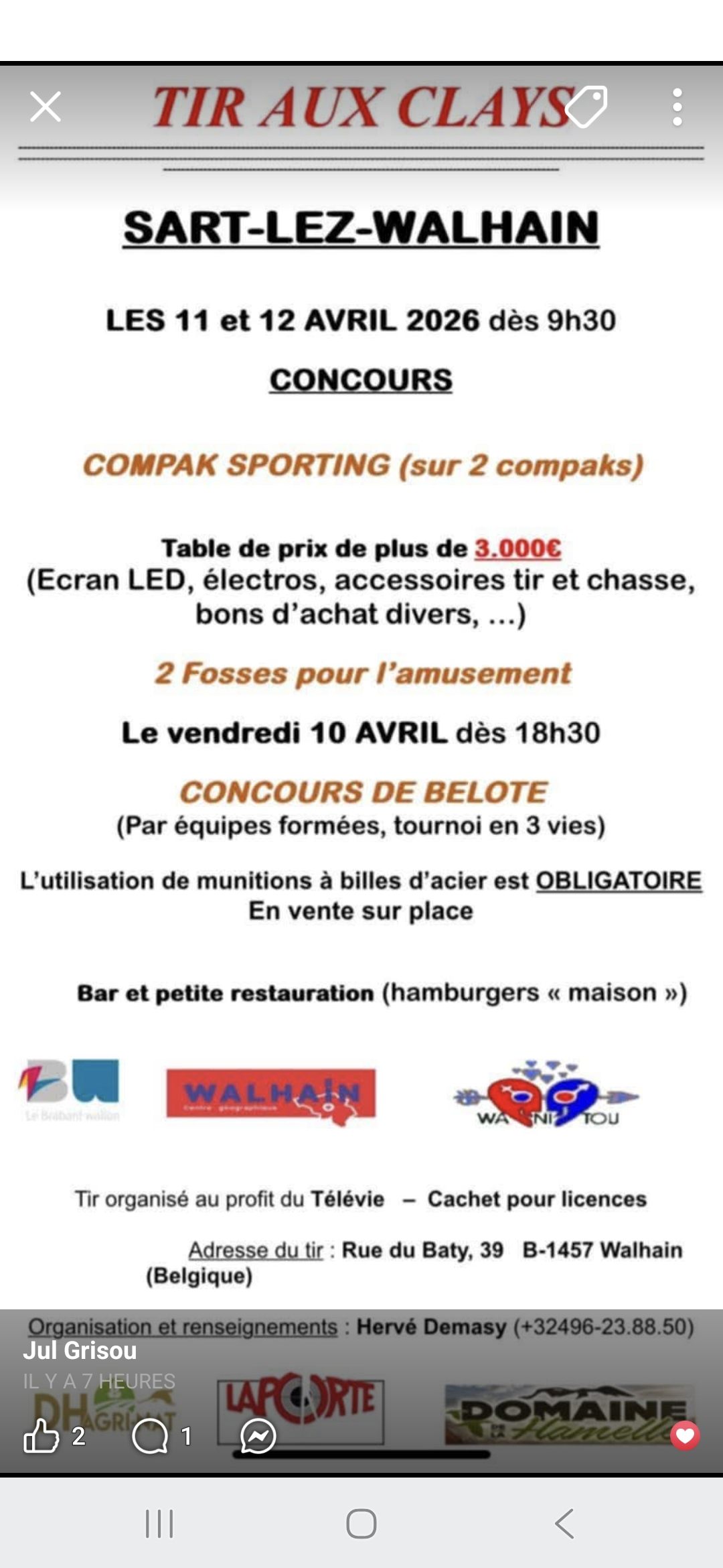 Ces tirs peuvent voir leur date être modifiée, et peuvent même être annulés à la dernière minutes dans certains cas. Il est TOUJOURS prudent de contacter l’organisateur . quand un numéro de téléphone apparaît.
